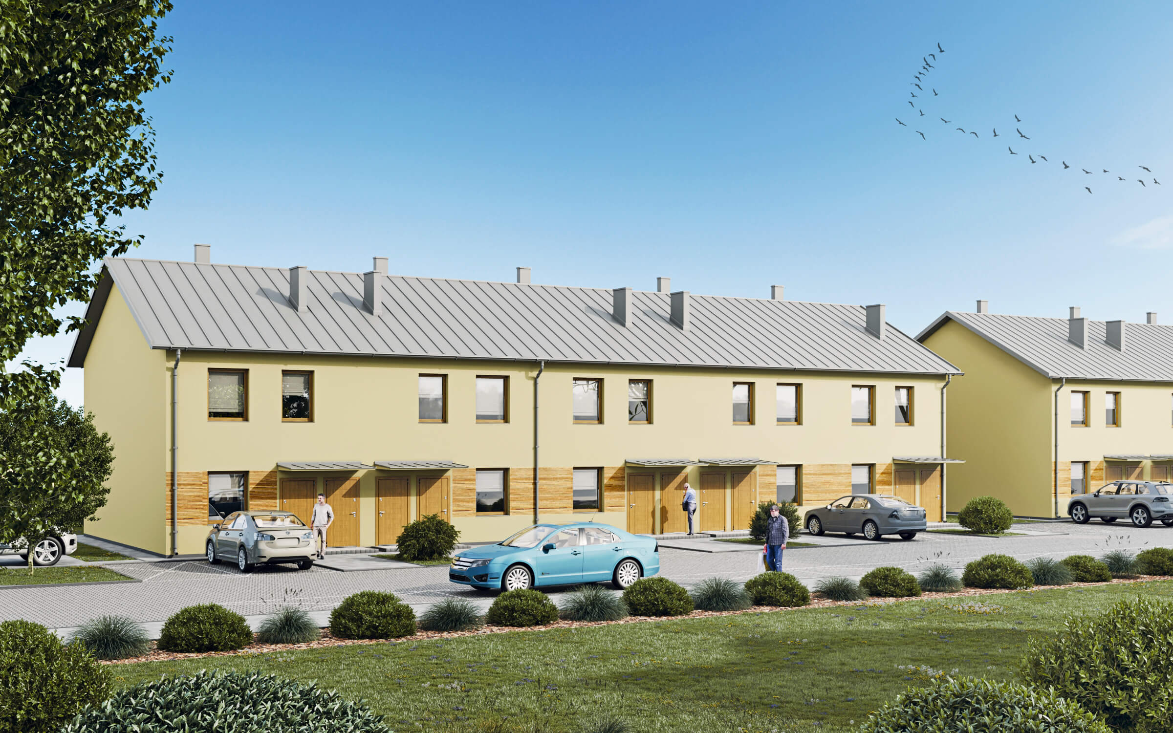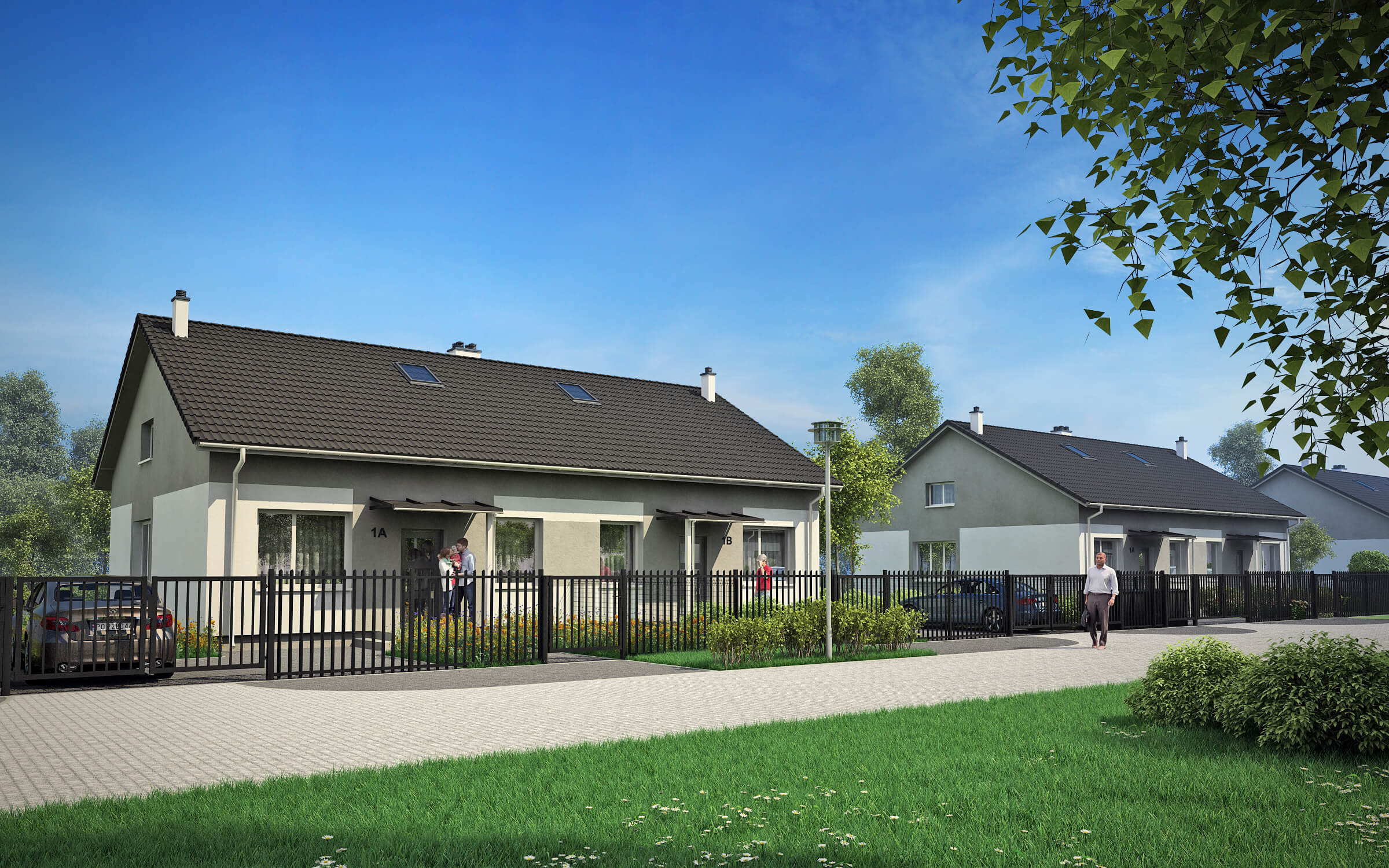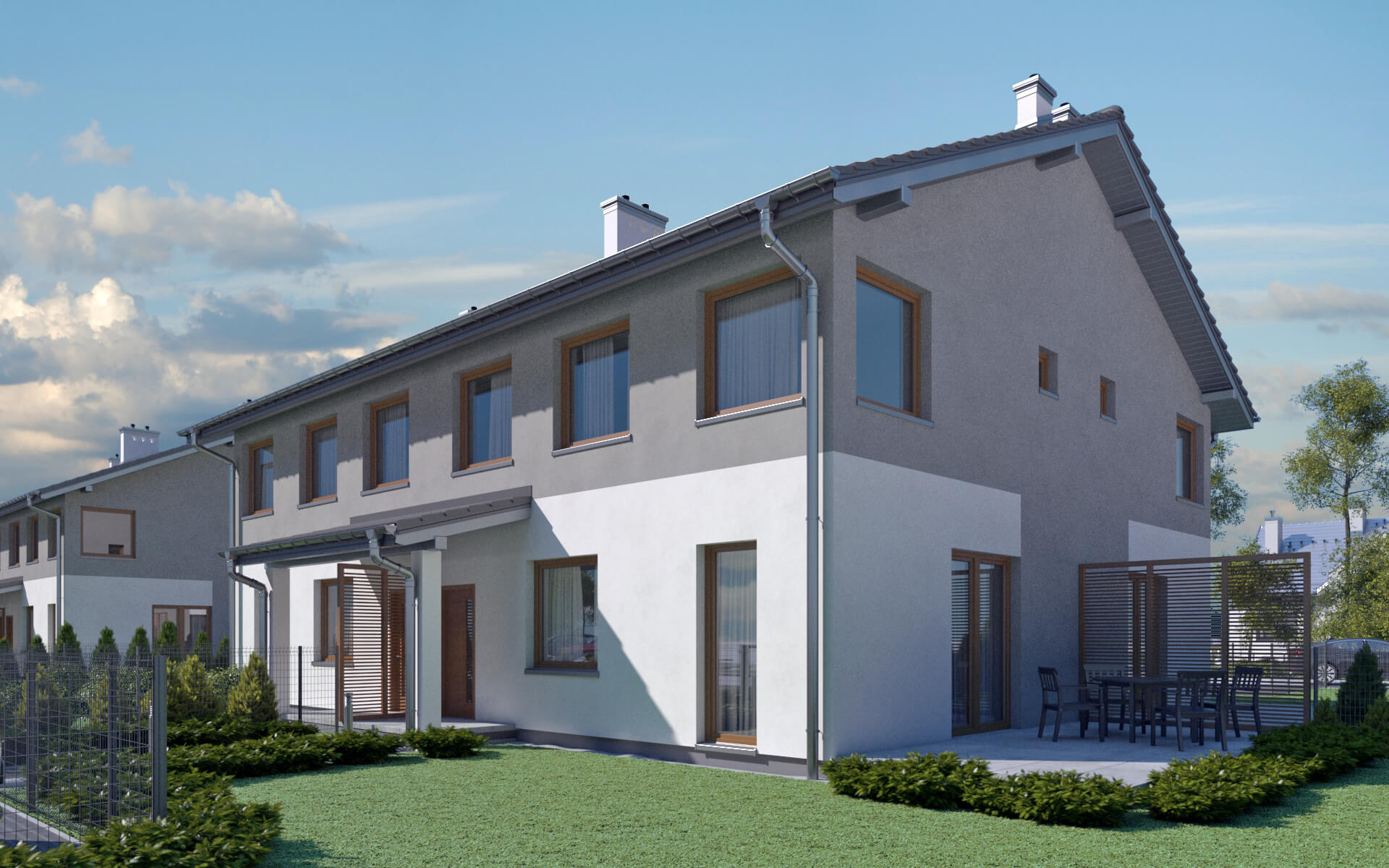 Każdy lokal posiada dwie kondygnacje z funkcjonalnym układem pomieszczeń, ogródek oraz miejsce postojowe na dwa auta. Wszystkie domy charakteryzuje podwyższony standard wykończenia.