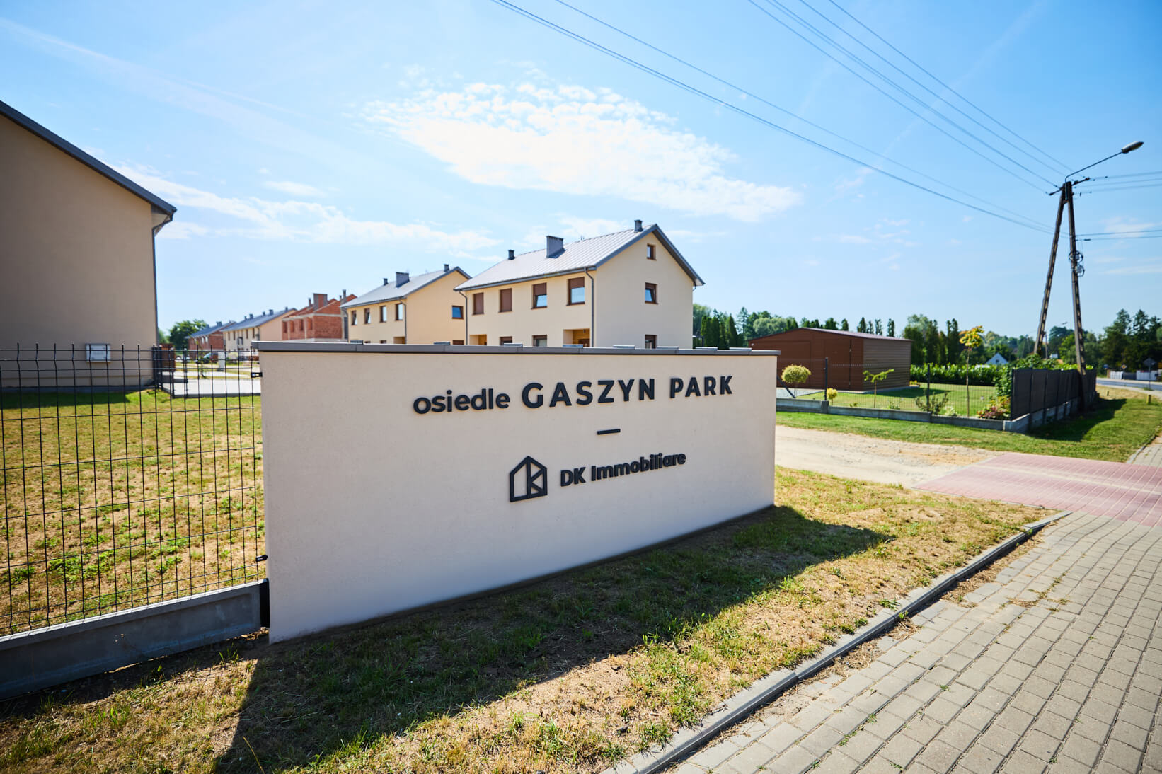 Gaszyn Park to kameralne osiedle składające się z 52 lokali o powierzchni od 45 do 90m2 w zabudowie bliźniaczej i szeregwej.